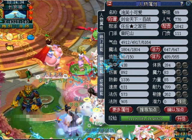 69级普陀山面板属性,这是打符之后的属性,肯定没有全身无级别的暴力,毕竟她是简易组。