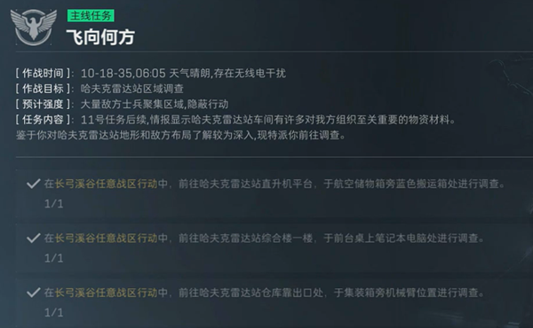 《三角洲行动》是一款设定在2035年的第一人称特战干员战术射击游戏。飞向何方是游戏中的一个任务,需要玩家们前往长弓溪谷的哈夫克雷达站,那么下面就来告诉大家飞向何方任务攻略。