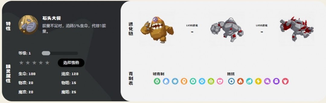 身体中结晶脉络光滑透亮,十分坚硬,似乎是某种矿石。长着凶狠的样貌,揣着不知如何表达的善意,示好的时候会展示一下由石头构成的肌肉。