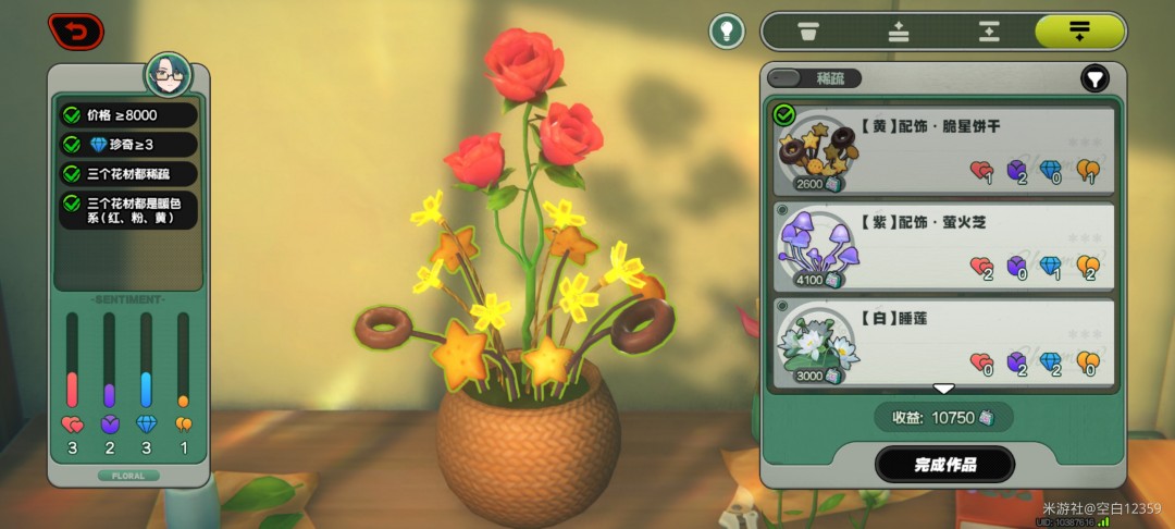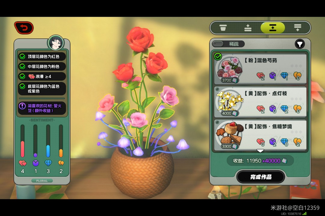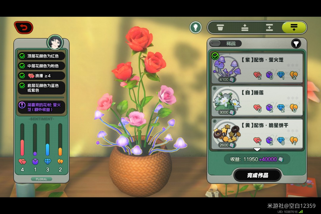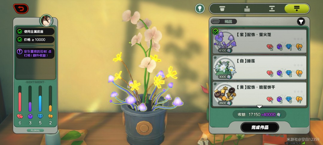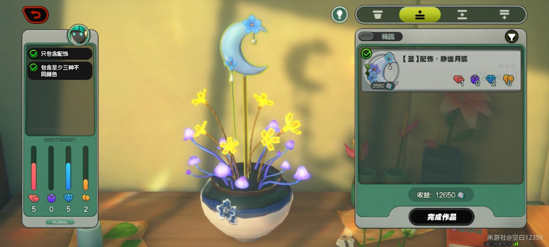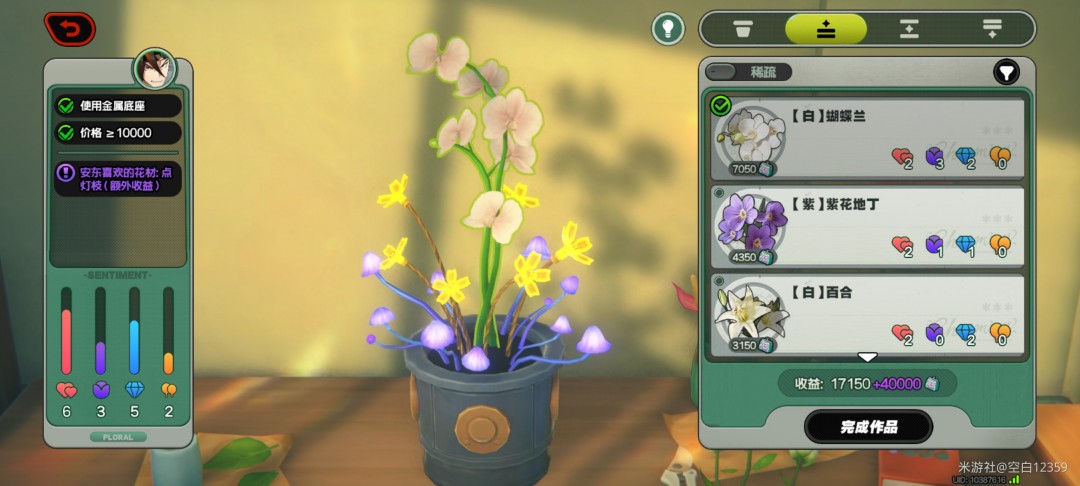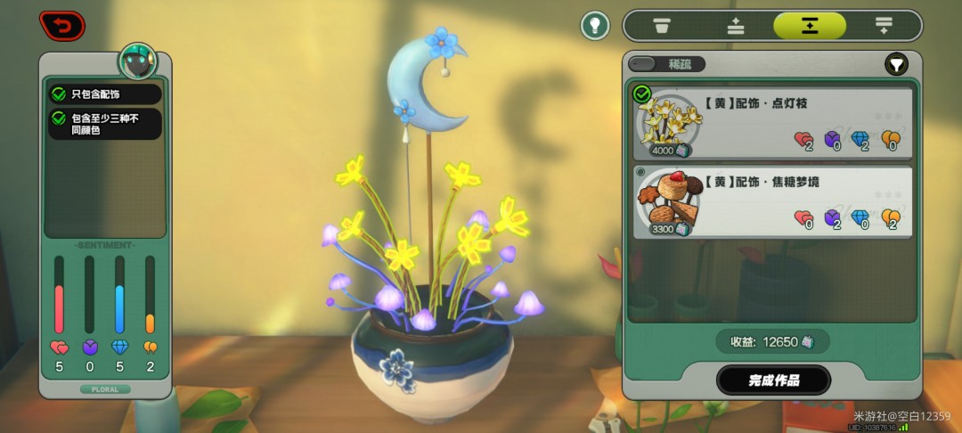 任意花盆,【蓝】月亮,【黄】点灯枝,【紫】萤火芝