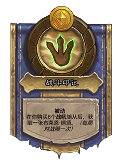 在你购买6个战吼随从后,获得布莱恩·铜须。(每场对战限一次。)