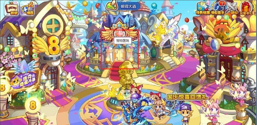 洛克王国游戏里面的宠物医院最新位置介绍:1、首先点击上面的地图;2、然后在地图上选择彼得大道;3、最后来到彼得大道后点击进入宠物医院。