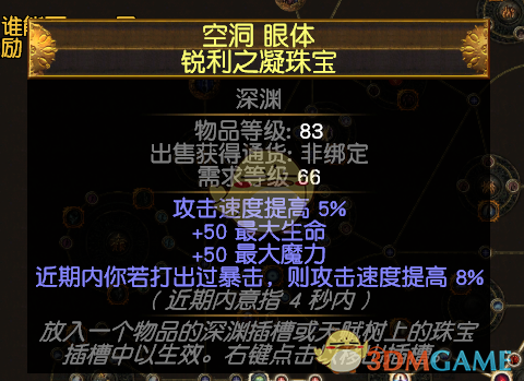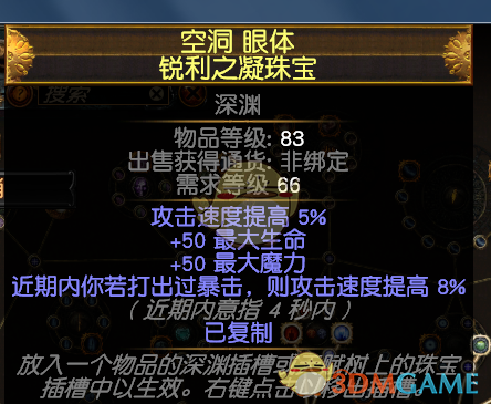 以下面这个珠宝来说 6个就是300血 300魔 暴击后78%攻速简直无敌!