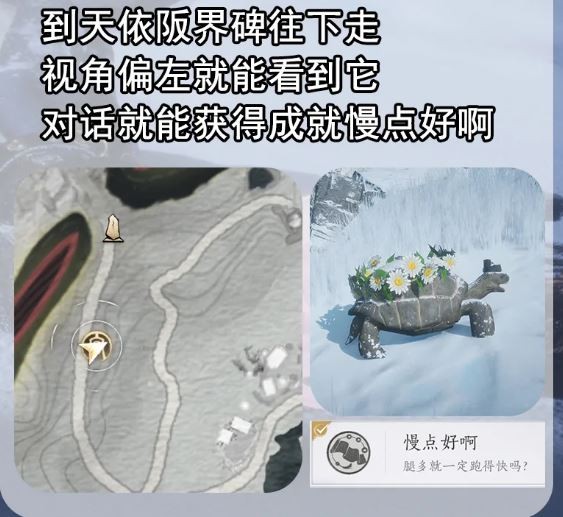 燕云十六声是一款开放世界游戏,玩家可以扮演年轻的侠客在世界游玩,在游戏中有许多不同的成就,完成成就后还能获得奖励,那么有不少小伙伴好奇慢点好啊成就怎么做,下面就来告诉大家慢点好啊成就攻略。 燕云十六声慢点好啊成就攻略 到天依阪界碑往下走视角偏左就能看到它对话就能获得成就慢点好啊 本文内容来源于互联网,如有侵权请联系删除。
