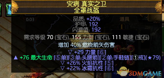 头盔基本的就是找血量和抗性就可以 这套BD不缺敏捷所以可以不用熊头 最好的选择就是有刀阵持续时间的附魔头 PS:这个赛季有一个化石叫魔法化石可以点出迷宫附魔 可以买很多自己点出附魔之后重铸洗属性 迷宫附魔会一直保持的