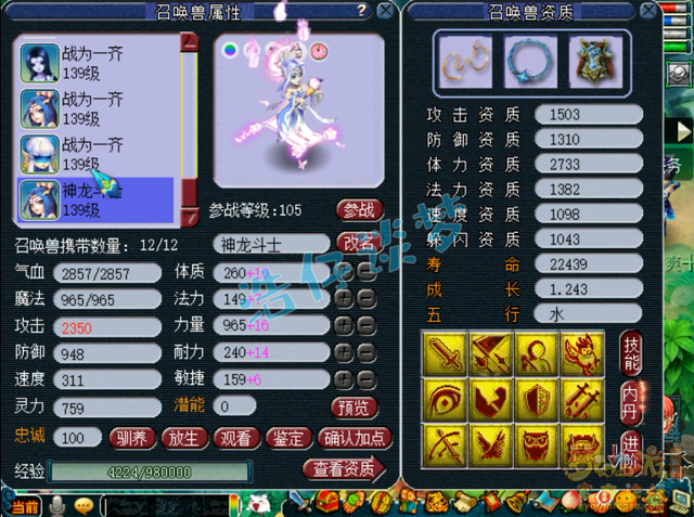 10技能龙魂凝光炼彩吸血鬼,这只跟上边那只技能差不多,只是资质稍逊色一点。