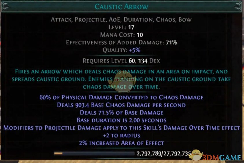 简单来说,现在的腐蚀箭矢既可以玩纯毒,也可以玩击中效果,走混沌伤害直击路线!告别+3弓,高物伤或元素点伤弓也能让你体验爆炸清怪的快感!