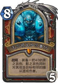 战吼萨没消失对我们来说是好事,他们达成条件的复杂性,让我们少了一个劣势对局。现在常见的,对阵失去火舌图腾的偶数萨,我们是均势。我们有前期的血刃剃刀和突袭控制场面,对方有攻击频率的优势。偶数萨比较吃牌序,我们是吃节奏的,虽然后期质量卡比我们多,但我们的威胁性更大,库卡隆和吼爹可不是吃素的!这个对局一定要在五费左右掌握场面,不断滚雪球,防止被女巫哈加沙拖死。注意四费的夺尸者,可以用民兵指挥官或者血刃剃刀加前期的小场面辅助处理。另外,标准的偶数萨没有处理暴乱狂战士的手段,所以不断解场保护暴乱狂的四保一战术也很有效。由于随从交换频繁,我们的质量单卡比如克罗雷可以大显身手。对方值得砍的东西很多,记住不要浪费鞭笞者苏萨斯的耐久在图腾上,结结实实的四点伤害往往是更好的选择。
