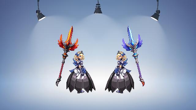 最后登场的是法杖!这设计…下半部分和战矛一模一样,然后把上半部分换个月亮,再随便加点普雷的羽毛就完事儿了!策划,你这是在偷懒吧?这么敷衍的设计,对得起我们这些氪金玩家吗?