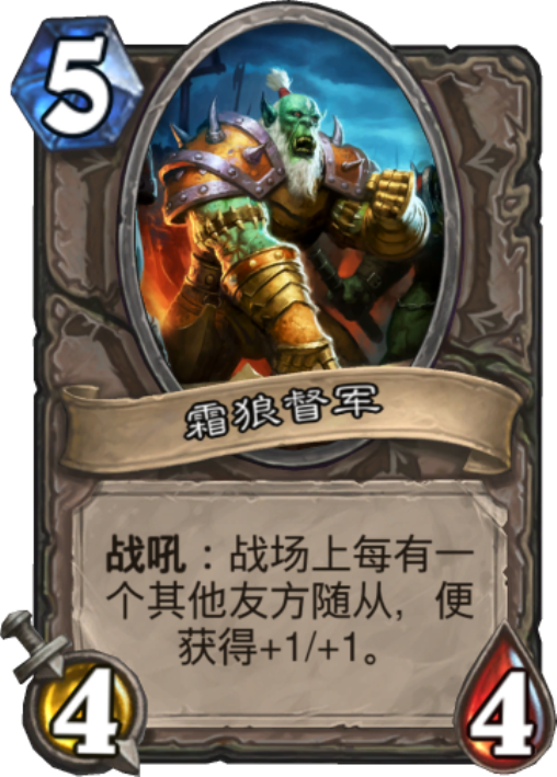 万众瞩目的第一名,就是这位最近才火起来的霜狼督军!之前奇数骑太强,没他啥事儿。现在等级提升被削弱了,大家都在找替代品,结果发现这货真香!虽然当回合不能生效,但一个大块头往那一杵,后面就好打多了!而且只有奇数骑用他,胜率高的吓人!