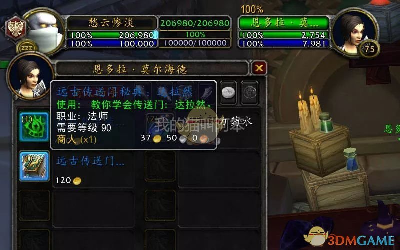 然后,去老达拉然巫术姐妹里找NPC恩多拉·莫尔海德(就是卖一堆法师玩具的那个),他会限量出售远古传送门的法术书! 记住,限量供应,手慢无!