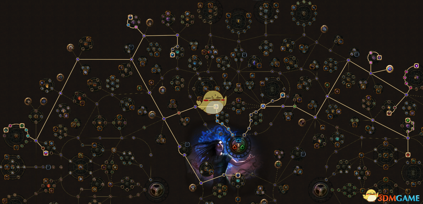 补出施法速度,这里的天赋是默认拿双手杖的,如果还没拿就不用点最上面护盾右边的3个小点。补出小的范围伤,还有路过的各种离的近的伤害和护盾,还有珠宝孔。之后在升级就补珠宝孔就好,然后力量敏捷哪个不够了就点30力或敏不用节省。后期有了大CI把灵异之体洗掉换成痛苦灵曲(就是贫血加30更多法伤)