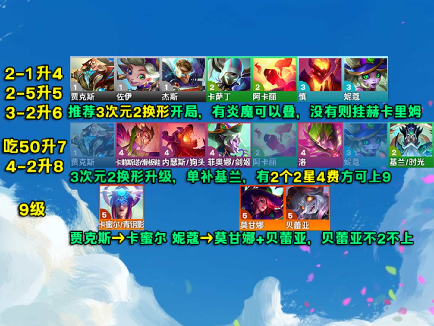 把贾克斯、妮蔻升级成五费大哥!如果实在上不去9,那就让妮蔻加班,或者追个没人要的四费卡三星!实在不行,法杖也可以把四费卡变成三星五费卡!