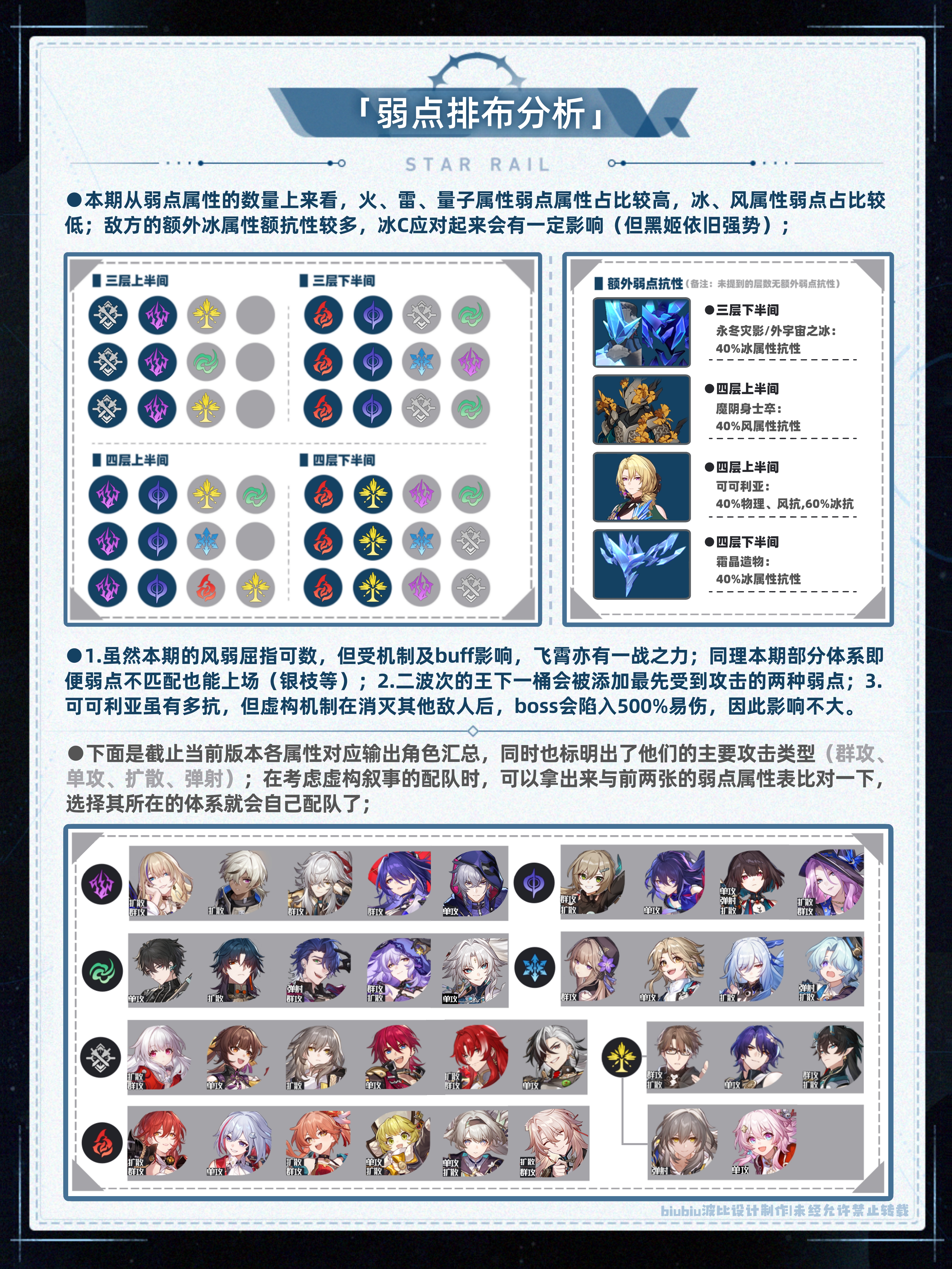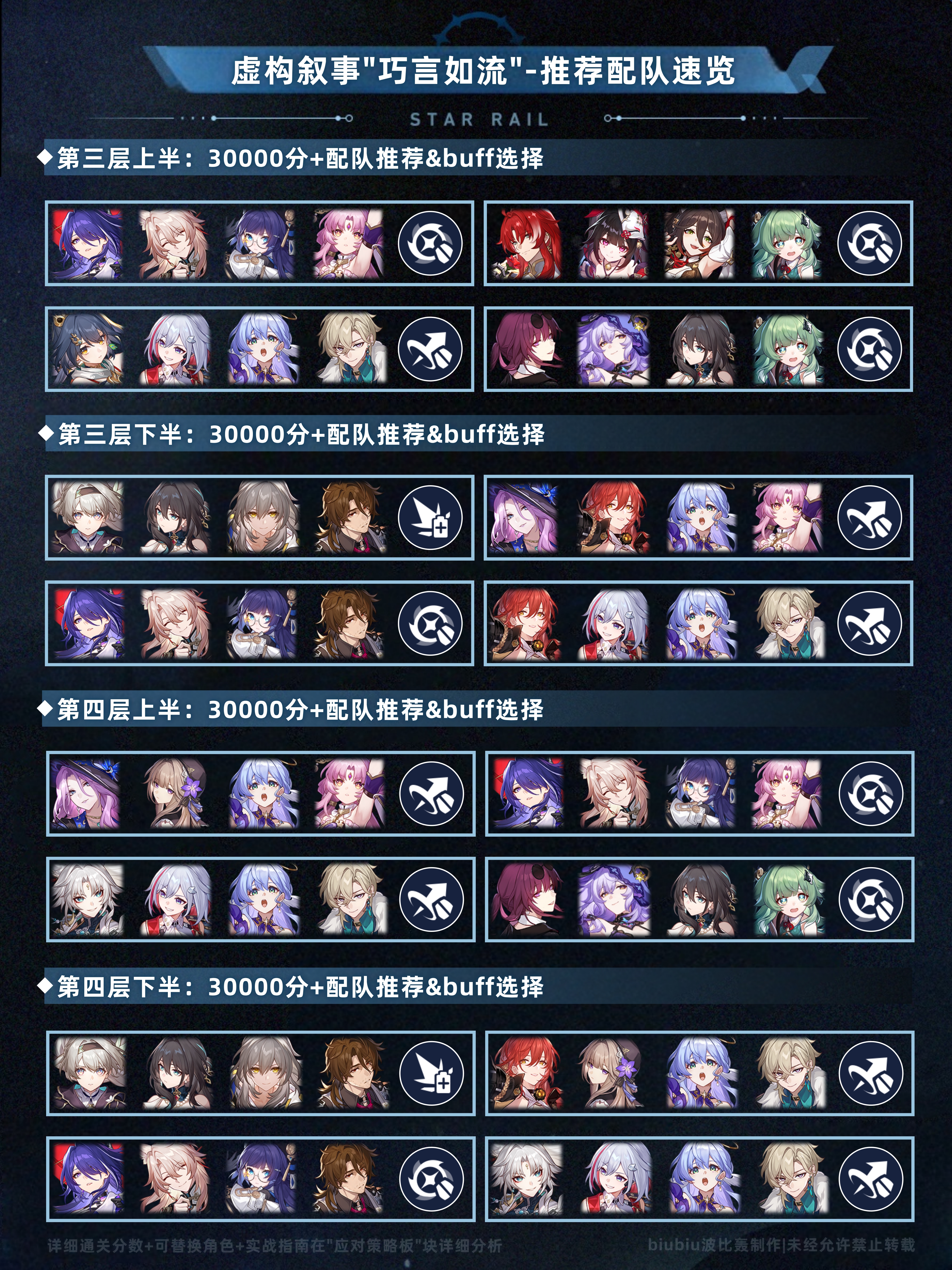 以上是本期的配队推荐速览(五星0+0,四星4~6魂,中低练度),想尽快了解可进行参考,下面就让我们对本期虚构叙事进行更详细的分析吧;