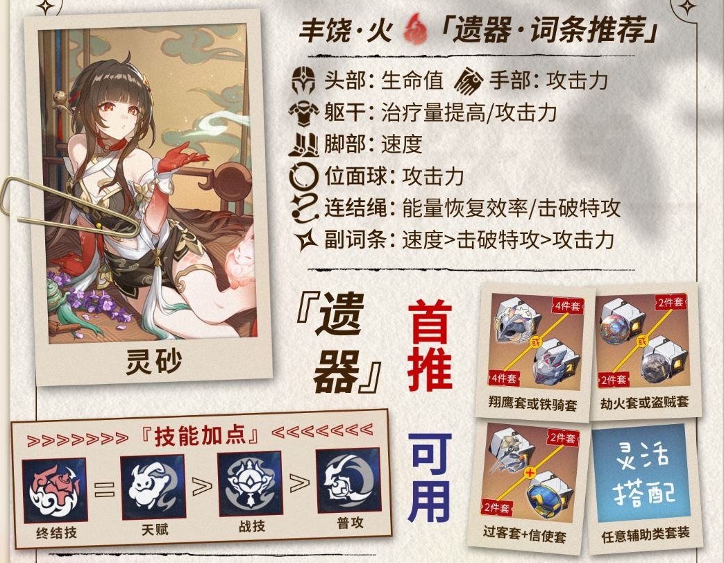 各位开拓者们,准备好迎接《崩坏:星穹铁道》的全新限定五星角色——灵砂了吗?这位火属性丰饶命途的仙女,可不是只会温柔加血的小奶妈!她可是个狠角色,擅长群体削韧,一招下去,让敌方小怪集体“罚站”,还能群体净化,简直是队伍里的清道夫!所以,江湖人送外号“击破奶”,奶量足,还能打!那么问题来了,想让灵砂小姐姐发挥最大威力,遗器该怎么选呢?别急,老司机这就带你上路,手把手教你打造最强灵砂!