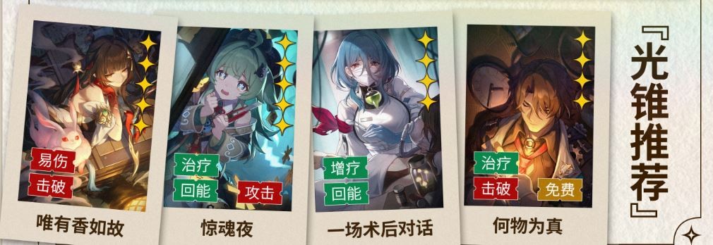 至于四星光锥,【等价交换】、【同一种心情】、【一场术后对话】,这几位都是奶妈界的常青树,用起来也是得心应手。