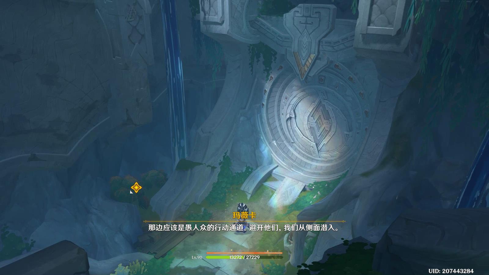 3. 秘源遗迹入口探险: 传送至任务指引的锚点,再次与玛薇卡进行亲切友好的对话。