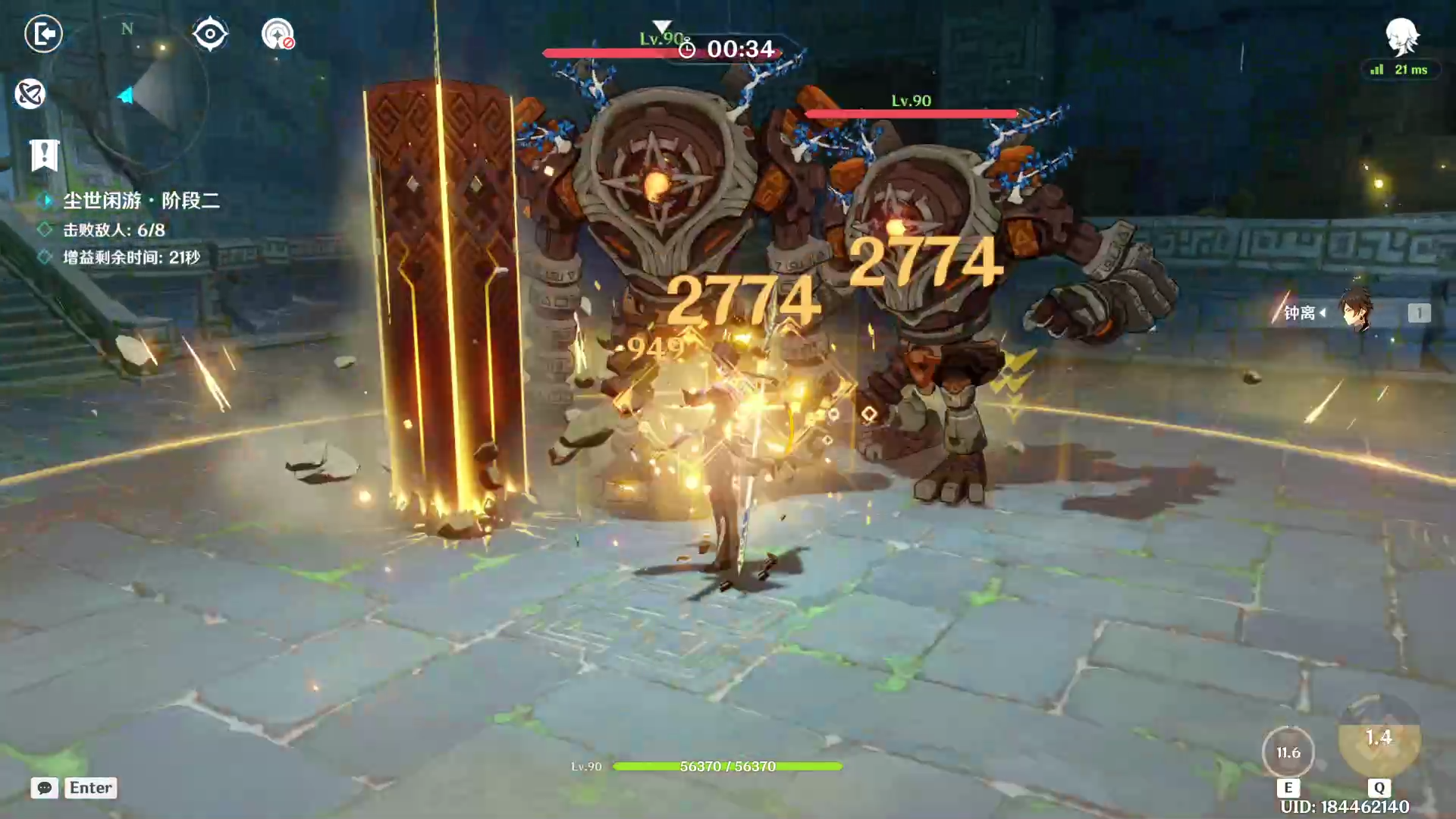 - 第三波:大宝。虽然单次伤害高,但攻击方式慢吞吞的,很难打破钟离的护盾。它们能承受5次冲击波,所以至少要留出35秒左右的时间来对付它们。拿到岩晶强化后,哪里亮了点哪里,简单粗暴!