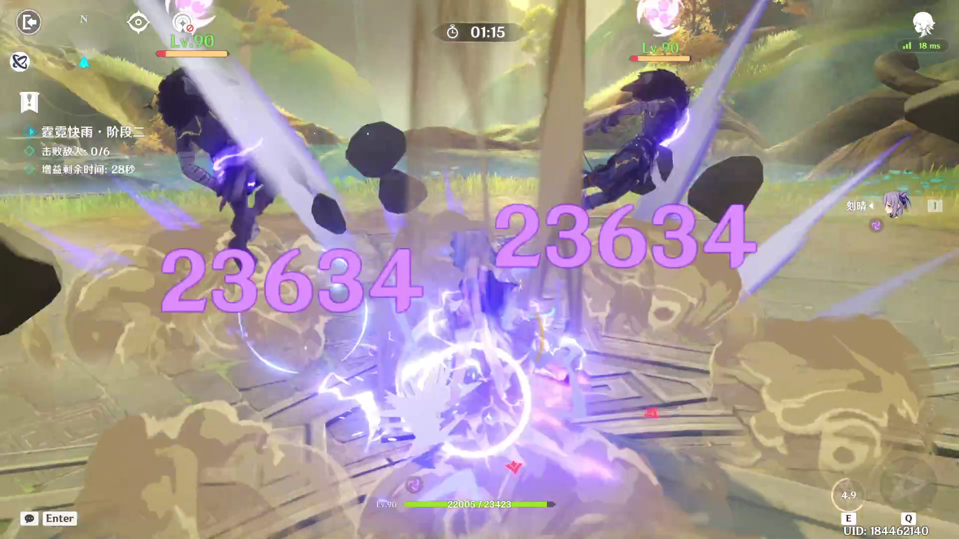 开战后,先往后退一步,调整角度,用雷楔精准击破所有标靶!记住,别用E技能飞天斩击,效率太低!击破标靶后,直接下落攻击,给下面的丘丘人射手来个狠的!