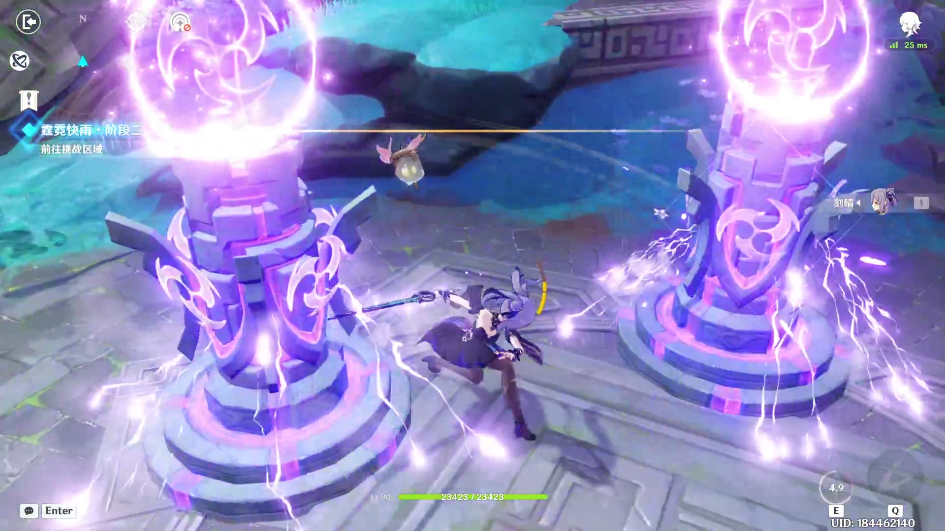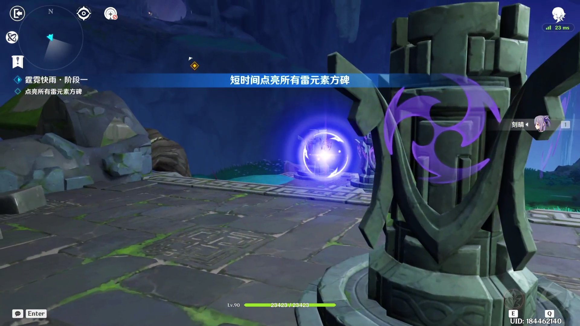 (1)跑到第一座元素碑附近,对着两座碑扔雷楔,然后潇洒位移!刻晴在位移的瞬间,第一座碑就亮了!
