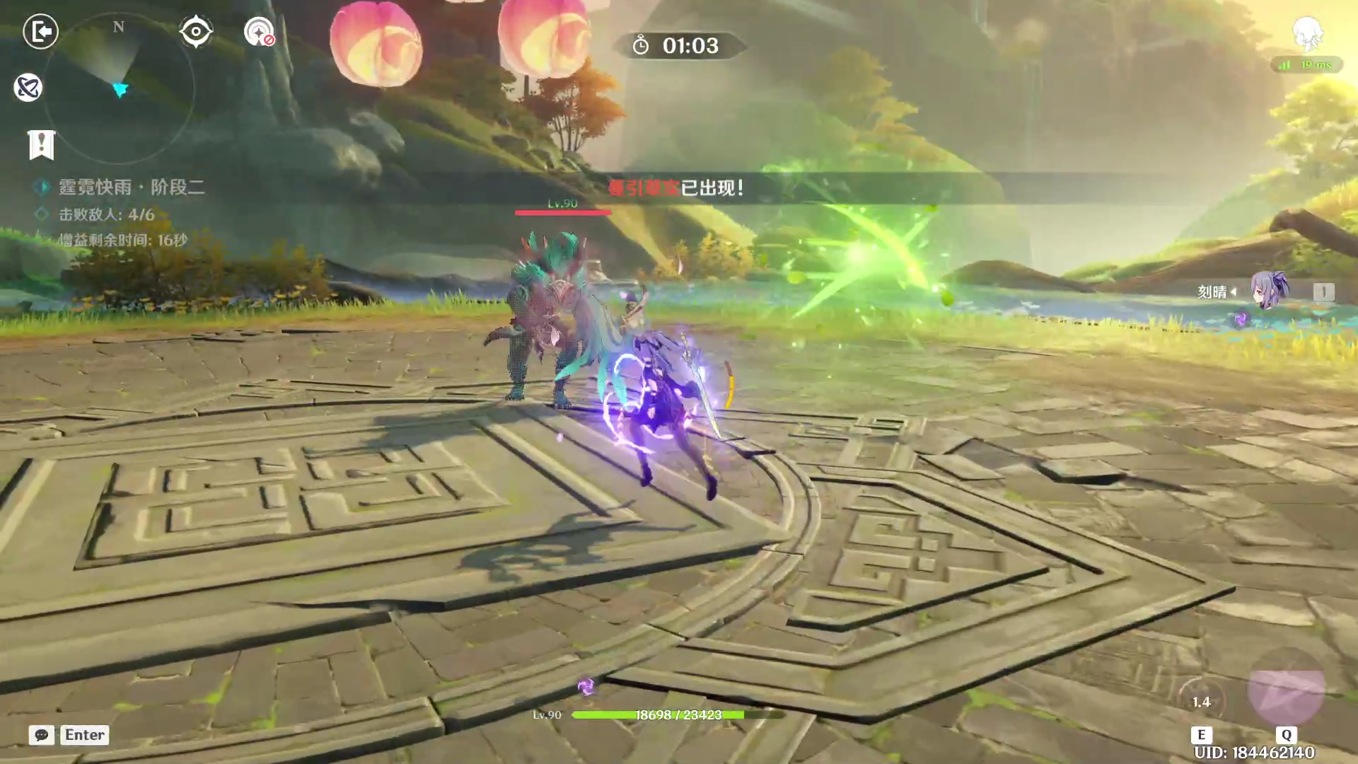 地图小技巧:击破空中的3个标靶,可以获得30秒的雷伤强化和元素精通提升!另外,地图上还会刷新草团,吸引敌人附着,打出激化反应,伤害爆炸!