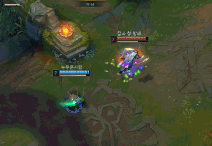 6级之后,特别是到了9级,阿卡丽就可以发挥无解的单杀能力,先用E或者R贴脸,然后开霞阵,躲开对方的控制技能,同时Q-A输出,3秒后可以使用二段R斩杀。