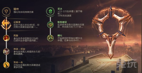 主系精密,征服者、凯旋、欢欣、致命一击,征服者是最适合诺手的符文,将伤害转化为为真实伤害,而且诺手被动的流血可以让征服者一直保持触发,欢欣提供的攻速可以快速打出血怒。