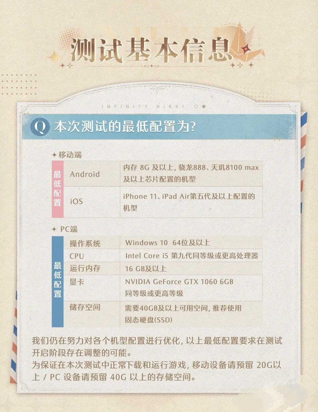 各位暖暖的忠实粉丝们,准备好尖叫了吗?叠纸游戏倾力打造的《无限暖暖》这款多平台开放世界换装冒险游戏,千呼万唤始出来,终于要迎来测试啦!没错,就在8号!激动的心,颤抖的手,是不是已经迫不及待想知道自己的手机/电脑能不能带的动咱们的暖暖小公主了呢?别着急,这就给各位奉上最全的配置需求,让大家心里有个数,省得到时候干瞪眼!
