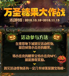DNF2018年万圣节活动已经上线,今年的万圣节活动有一个万圣节糖果大作战活动,那么具体活动要怎么玩呢,下面我们来看下万圣节糖果大作战活动的介绍吧。 活动时间:2018.10.18~2018.11.15 活动介绍:在推荐地下城消灭活动怪物,就会掉落小杰克的糖果。将小杰克的糖果交给小杰克NPC,就能换取奖励。消灭活动怪物还有一定几率掉落深渊宝珠哦。 活动的玩法非常简单,各位玩家记得在地下城多拾取小杰克的糖果。 本文内容来源于互联网,如有侵权请联系删除。