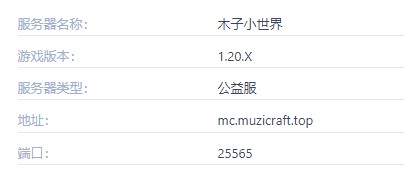我的世界里面有很多的服务器,每个服务器都有自己的独特的玩法,今天给大家带来的服务器的名字叫:木子小世界,那么下面就是这个服务器的一个具体的IP地址.