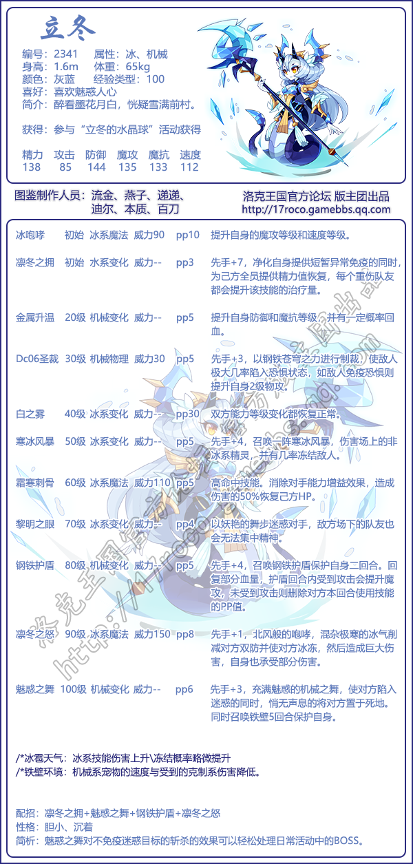 立冬是网页游戏《洛克王国》中的冰、机械属性节气宠物是节令志宠物之一,代表生肖蛇。