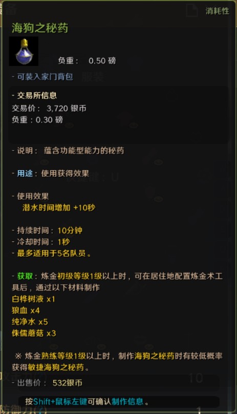 如果能加上暂时提升潜水时间的海狗之秘药就会更完美!