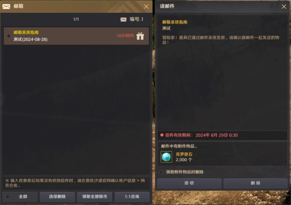 公会福利金、序号奖励、活动奖励等都会使用到信件。