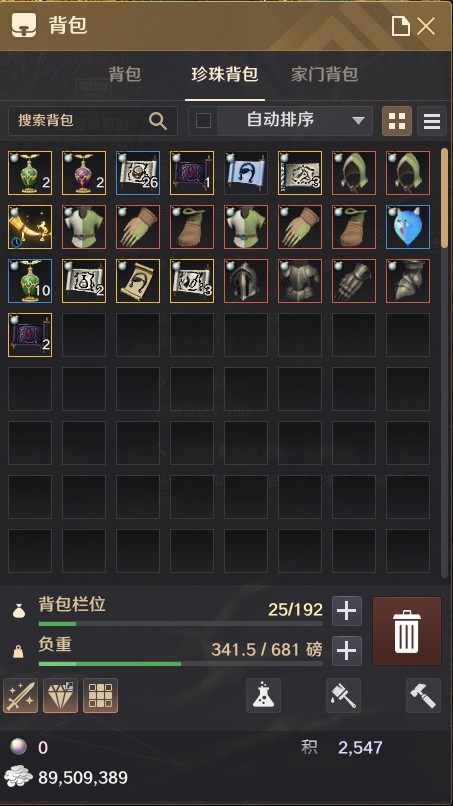 珍珠背包不需要另外扩张,就能使用192格。