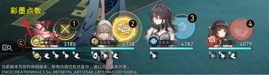 ②角色头像下方的特殊机制栏位会显示当前的【彩墨】点数,示意本次【结印】期间剩余的强化普攻次数,耗尽时退出【结印】状态。
