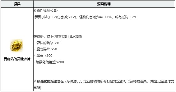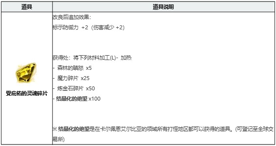 关于二次改良的「充满庇佑的灵魂碎片」的改良效果和制作方法如下: