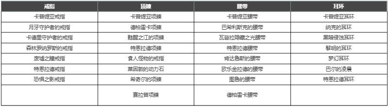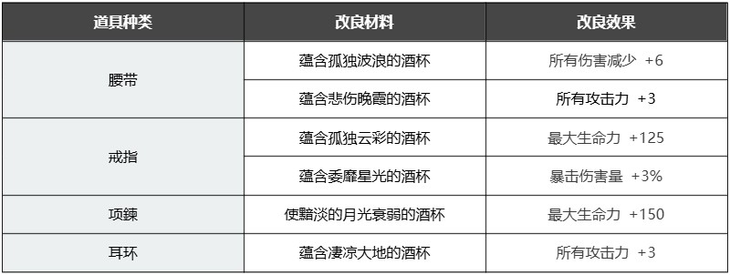 目前可以改良属于戒指、项链、腰带的饰品,改良的材料和效果如下。