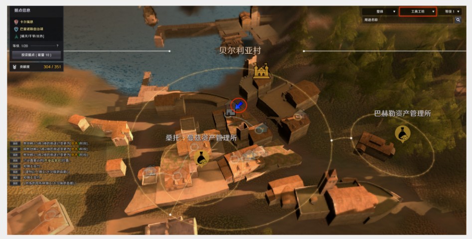 在世界地图中选择贝尔利亚村庄(点击左键),只要利用右上端的搜索选项,就能轻易掌握工具工坊的位置。