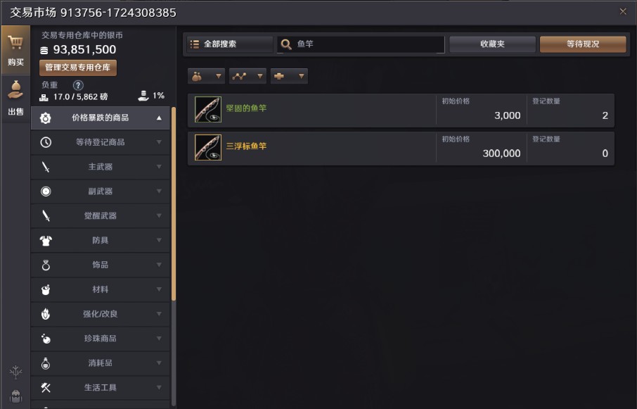 需要完成较复杂又困难的任务才能获得的三浮标钓竿也是,只要有货的话就可以购买。