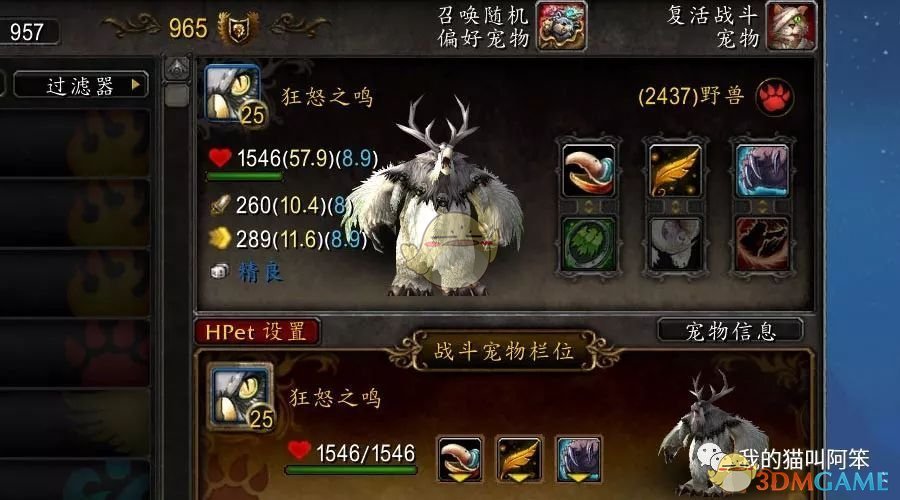 野兽宠物。白色的枭兽外观,技能简单粗暴。