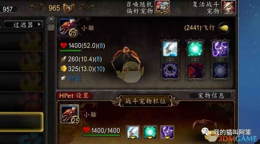 飞行宠物。1级13速的小聒满级以后是325速,是个不错的收割宠,但还比不上同速的乌鸦。小聒有一堆魔法技能,飞行内战优势很大。