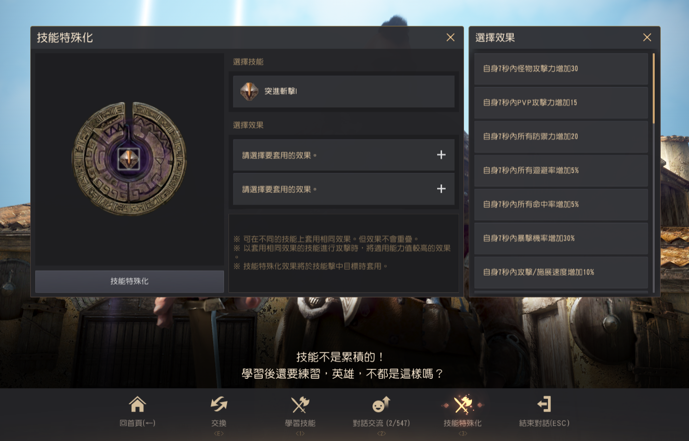 ▲请于技能(快捷键:K)视窗中确认技能深化。