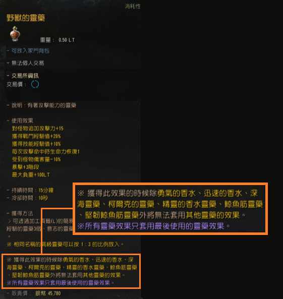 ▲请务必好好确认道具说明,是否有标注可以一同使用的香水,灵药