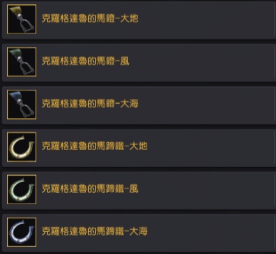 克罗格达鲁的马具分为「风、大地、海」3种属性。