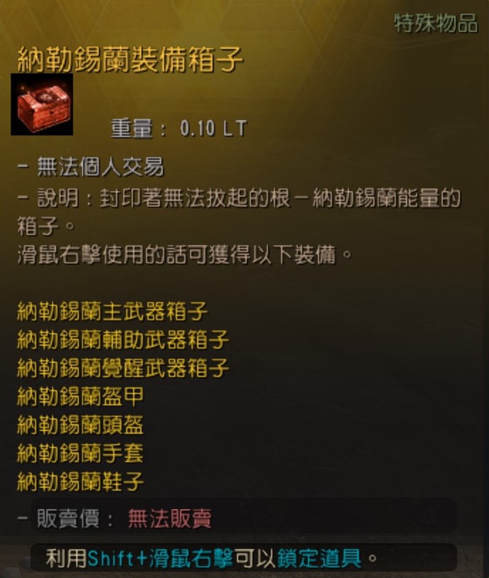 因为会发放使用了箱子的职业的武器,所以如果想要用其他角色使用纳勒锡兰武器,请把箱子道具移到该职业那边后再开启并使用。