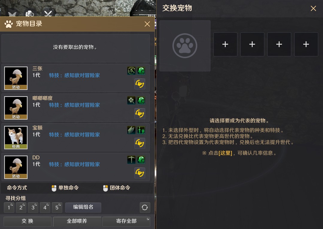 3. 世代上升机率会依据选择的宠物数量和世代,在交换时提高宠物世代的上升机率。