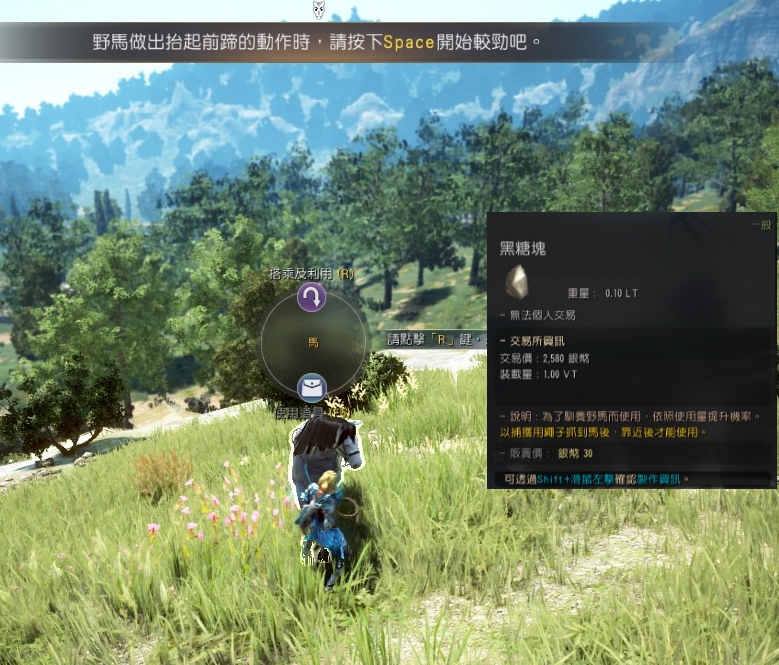 因此在骑乘前,按下F5使用带来的黑糖块,可以增加成功驯养的机率!