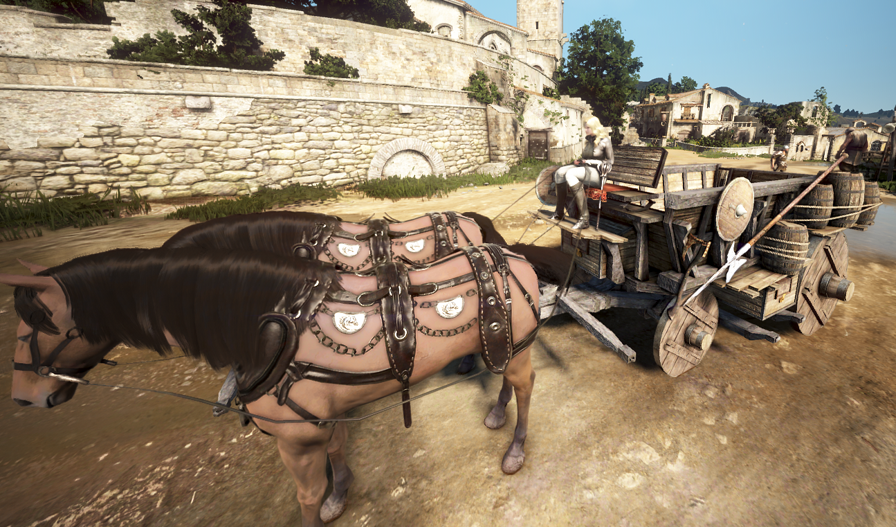 马车基本上是由马拖曳马车的样貌呈现。 可以把马厩内持有的马和马车连接(根据马车的不同,最多可以连接到4只),