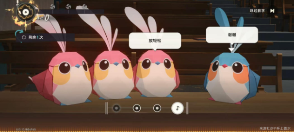 就在最近崩坏星穹铁道终于上线了2.6版本给我们带来新冒险,这次版本更新还上线了许多新内容,有新遗器,新地图,新角色,还有新活动,那么有小伙伴好奇美梦进行曲进阶试炼怎么3星,下面就来告诉大家。 崩坏星穹铁道美梦进行曲进阶试炼3星攻略 操作技巧: 左边两只小鸟的节奏是间隔1秒回应,最右边的小鸟是间隔2秒回应,有个小技巧,就是掌握好节奏每一秒按一下屏幕,教学过程掌握好节奏1S点击一次屏幕。 第一只: 第二只: 第三只: 本文内容来源于互联网,如有侵权请联系删除。