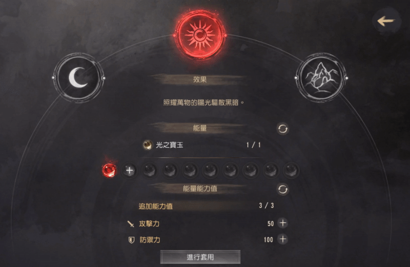 就会显示如同下方的详细画面,在这裡可以将光之宝玉投资在属性。